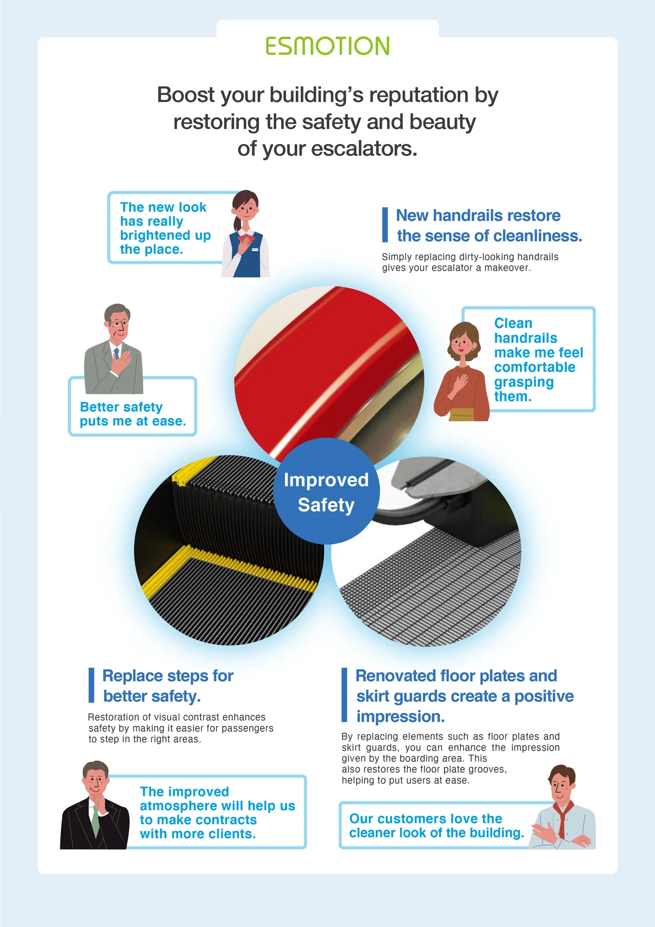 Các thiết bị được thay thế là các thiết bị có thiết kế mới nhất với công nghệ hiện đại và đáp ứng quy định liên quan. Ngoài ra, độ tin cậy và an toàn sẽ được cải thiện do thang máy được thay thế các thiết bị tiên tiến nhất.