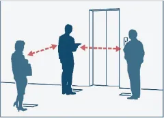 Giữ khoảng cách an toàn ở sảnh chờ và trong thang máy.