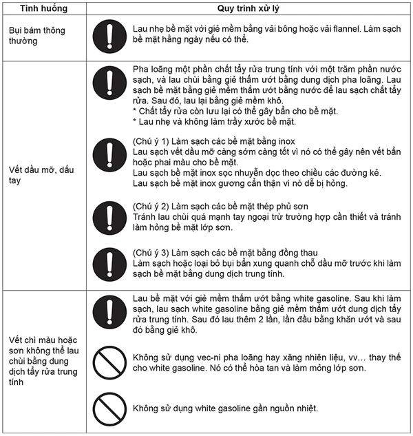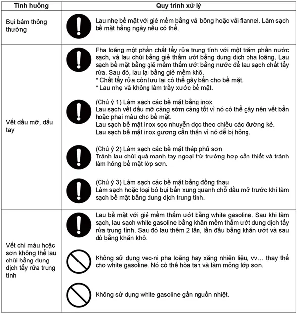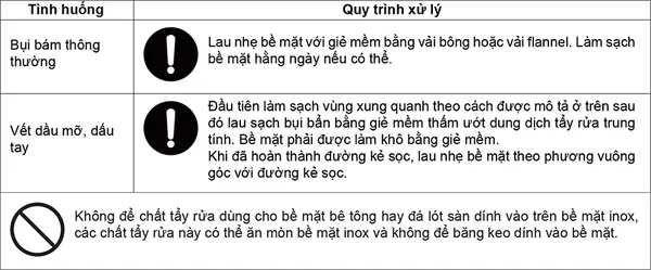 Áp dụng cách thức sau đây cho bề mặt thép không gỉ (Inox sọc nhuyễn, Inox gương):